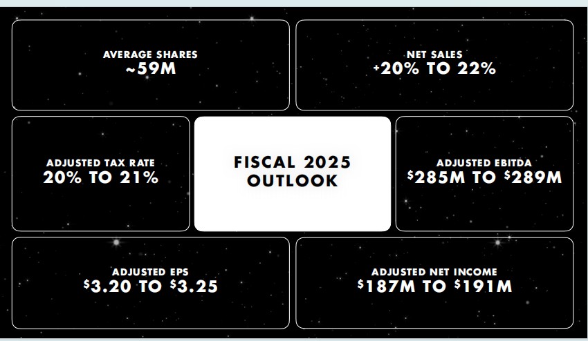从大环境看,消费品普遍不好,其他的美妆品牌都是继续负增长,因此 ELF 的表现还算是鹤立鸡群,另外最新一个季度,利润率也有了一定改善,ebitda 率和毛利率都有提高,并且全年的销售额指引也略有提高,从之前的增长 20-22% 调升至 25-27%。这已经算得上一份超预期的财报了。