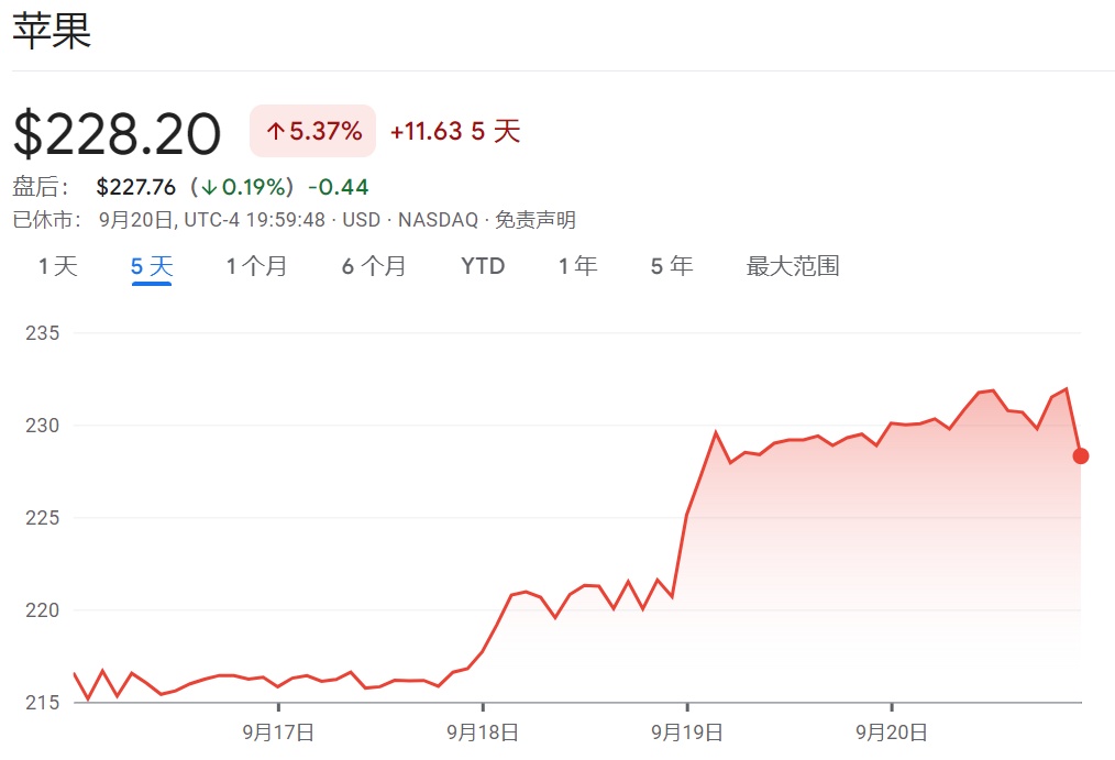 郭明錤报告公布后,苹果股价周一下跌,尽管因美联储大幅降息得到了暂时提振,周五继续下行。