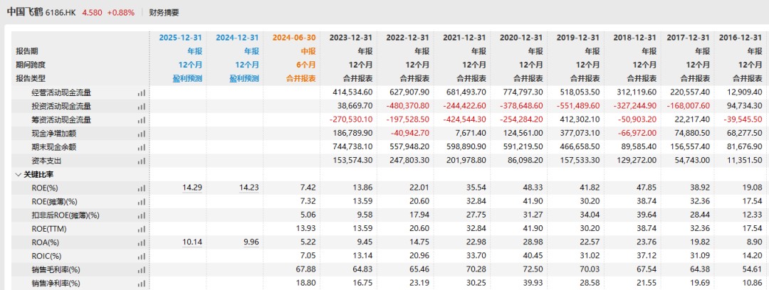但在今年利润的分配上,飞鹤又好于大部分的上市公司,在上半年,公司派出了 13.5 亿,派息比例达到 72%。叠加较低的估值,当前的股息率达到了 7%,在消费品里面已经算很高了,并且也给承诺了,未来派息绝对金额每年 10% 的成长、派息比例 70% 以上。