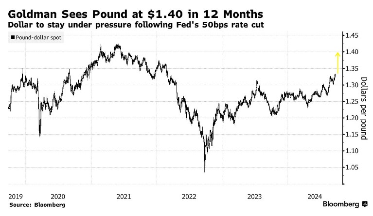 由于对美元的观点更新了,高盛现在更加看好英镑,其对未来 12 个月英镑兑美元的目标价从之前的 1.32 上调至 1.40,这是该货币对自 2021 年以来从未触及的水平,也是华尔街最高的预测之一。