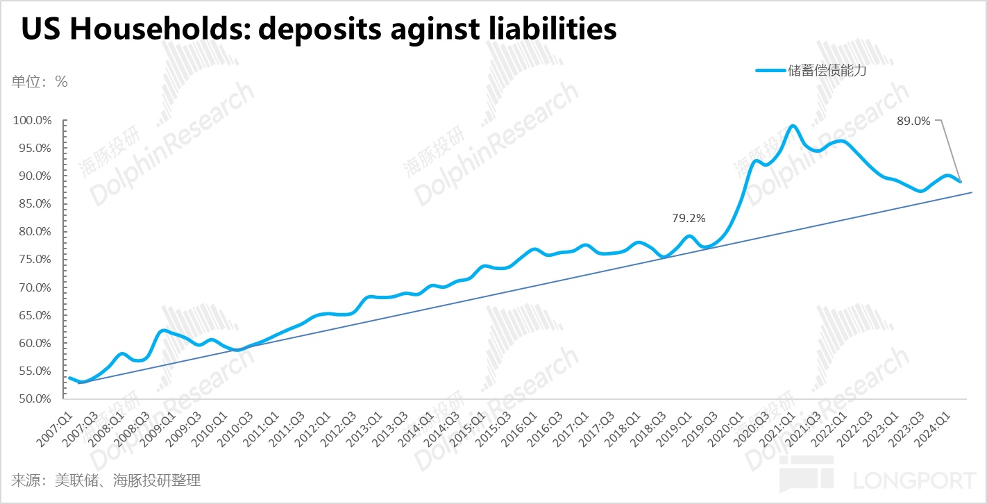 从通胀和消费数据来看,通胀往 2% 的长期目标回落,而居民消费也在回落当中,继续挤压储蓄来释放消费的空间已经越来越小,这种情况下,通胀看起来更像是个翻篇的问题,而关键已逐步变成了如何保住居民的收入增速,也就是保住居民就业率。