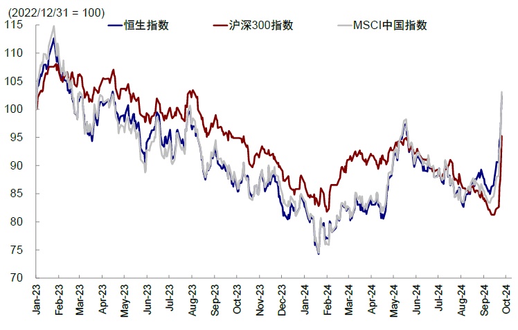 我们近期持续向市场传递的几点信息也基本得到印证:1)港股具有更大弹性,因为其盈利更好、估值和仓位都出清更为彻底(《港股具有更大弹性》)。2)港股对美联储降息更敏感。我们在《降息落地后的反弹空间有多大?》中测算,仅靠美联储降息和风险溢价回到过去 5 年均值,恒指有望达到 19,500-20,500,目前已经达到该区间上沿。3)推荐对利率敏感的成长股、受美国地产需求拉动的出口链,港股本地分红和地产,在本轮上涨中都呈现更大弹性(《降息落地后的反弹空间有多大?》)。