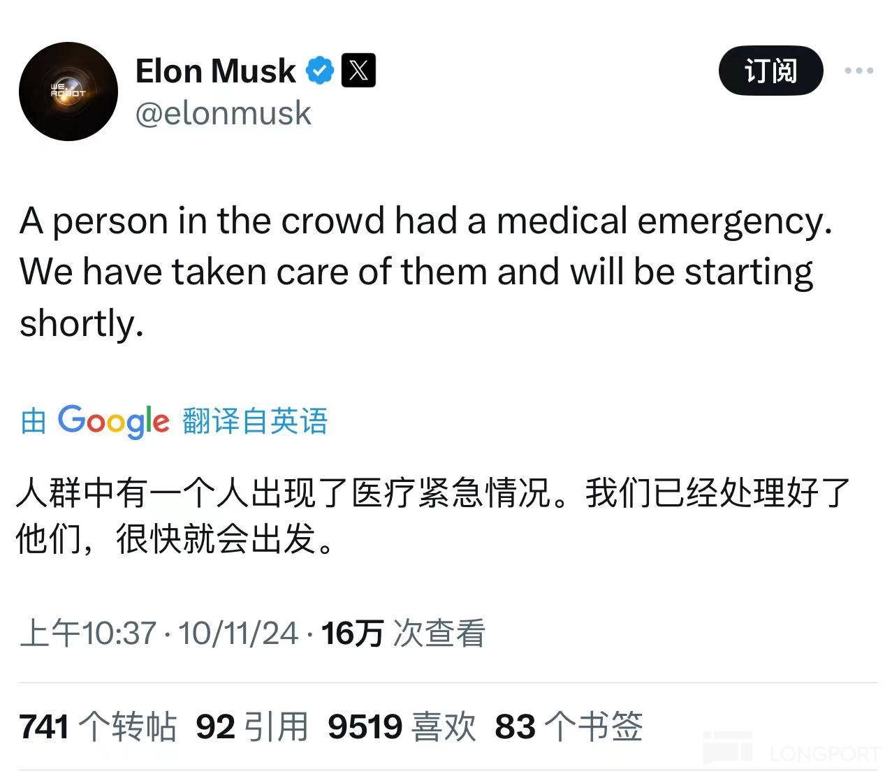 直播原定于 10 点开始,但马斯克一般都会 “迟到” 一段时间,这次直播迟到达 40 分钟,主要是因为 “人群中有人出现医疗紧急情况”,马斯克表示,直播将会很快进行。