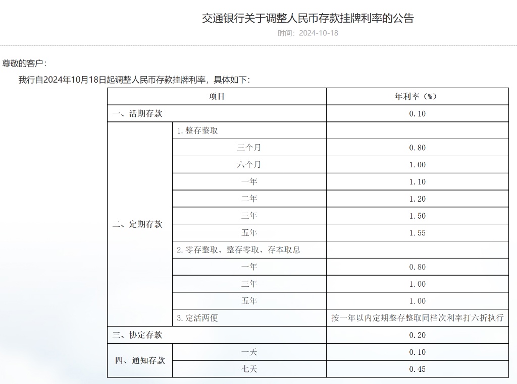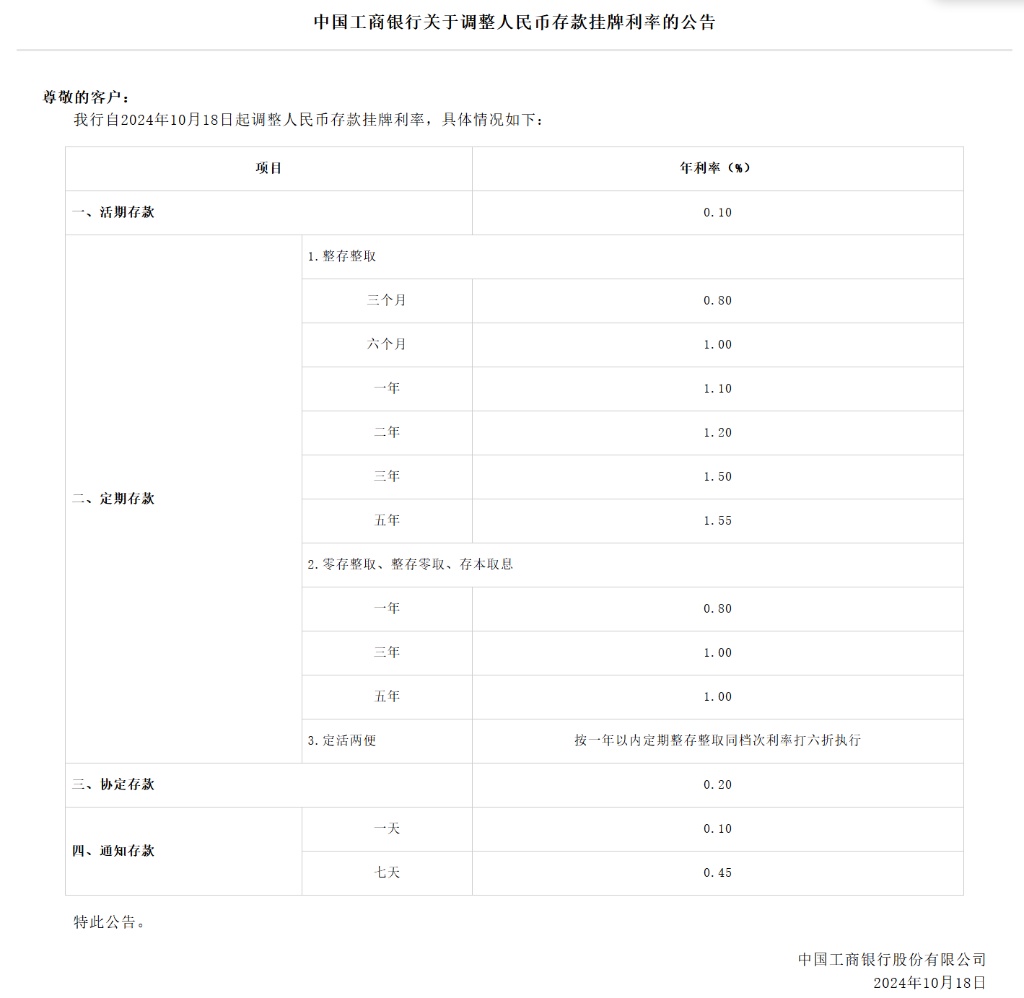 10 月 18 日早间,工商银行、交通银行、中国银行、建设银行、农业银行、邮储银行先后公告下调人民币存款挂牌利率。