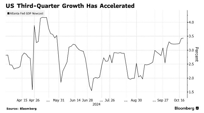 “最重要的是,经济仍在继续扩张,” 他在周六的一份研究报告中写道,并强调亚特兰大联储目前估计第三季度 GDP 增长率为 3.4%。他认为美国仍处于不着陆的轨道上,即经济持续增长,通胀重新抬头。