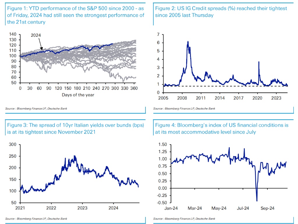 与此同时,上周四美国投资级信用利差达到自 2005 年以来的最低点,意大利 10 年期国债与德国国债之间的利差也收窄至 2021 年 11 月以来的最低水平。