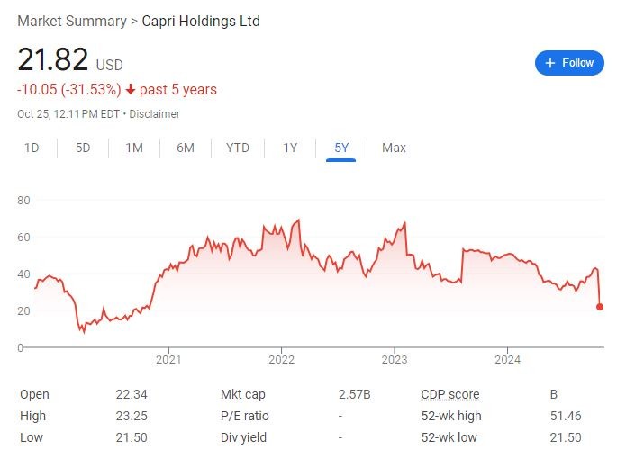 有分析称,Capri 股价暴跌是因为这一品牌的市场份额下滑问题更严重。