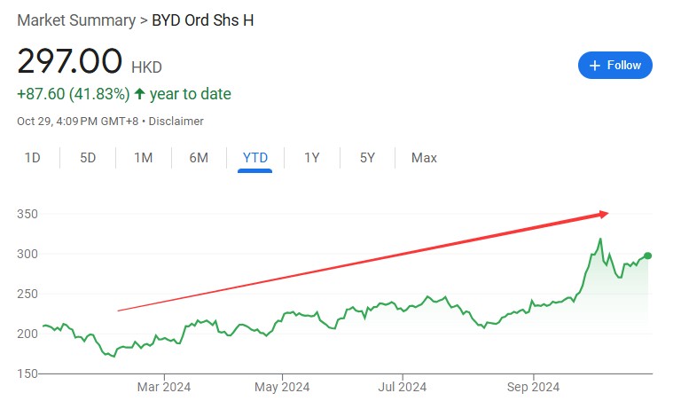 比亚迪港股自 2 月份的低点已经反弹超过 70%。