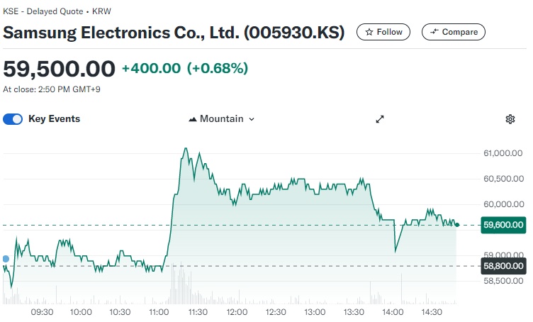三星电子韩股今日一度拉涨超 3.5%,现涨幅缩窄至 0.68%。