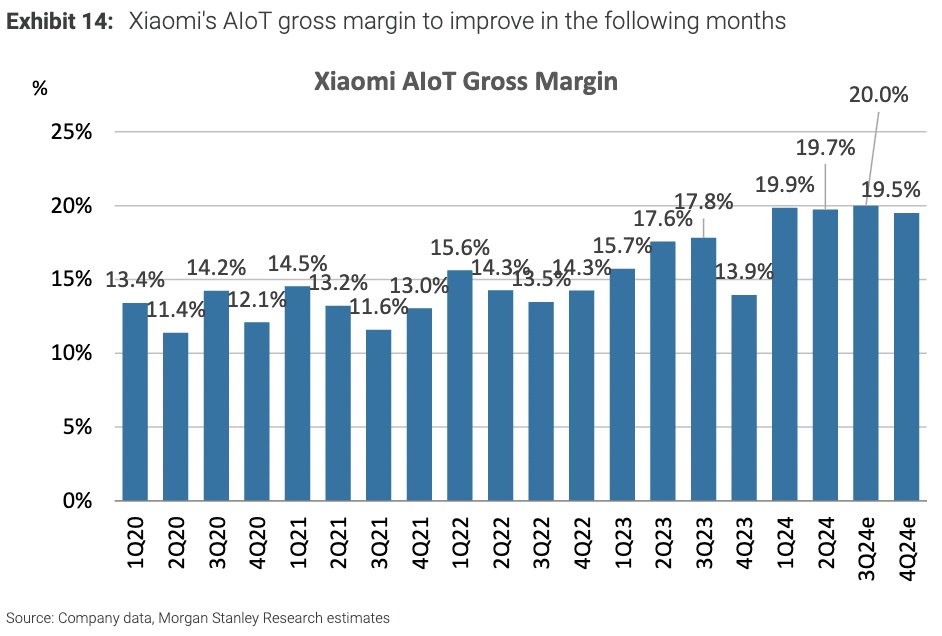 大摩预计,随着产品组合的优化和成本协同效应,AIoT 的毛利率有望继续提升。