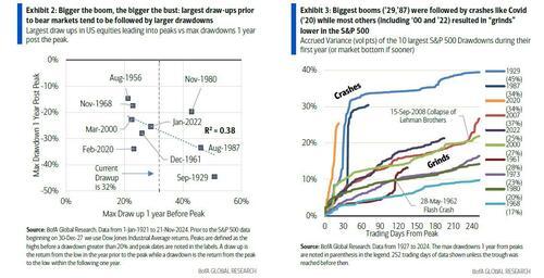 该团队写道,80 年代的宽松和减税政策,以及 90 年代的互联网泡沫推动了创纪录的股市繁荣,但随之而来的 1987 年、2000 年和 1929 年的崩溃教会了我们一件事:“爬得越高,摔得越狠。”