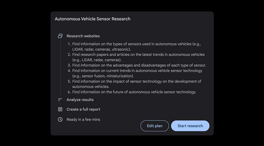 其中一个 AI 代理 Deep Research 旨在通过创建多步骤研究计划帮助用户研究复杂研究。它似乎是 OpenAI 的 o1 的竞争对手,后者也能够进行多步骤推理。然而,谷歌发言人指出,该代理并不用于解决数学和逻辑推理问题、编写代码或进行数据分析。Deep Research 现已在 Gemini Advanced 中推出,并将在 2025 年登陆 Gemini 应用。