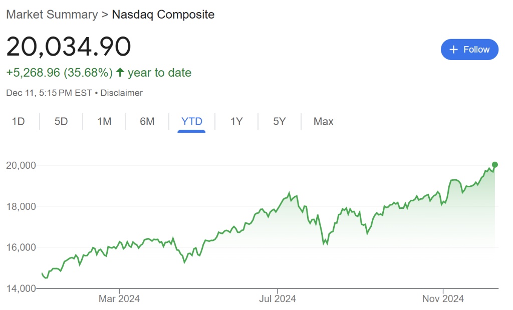 “纳斯达克任何在年末因投机行为而出现的快速上涨,都将对 2025 年初的市场表现带来负面影响。”