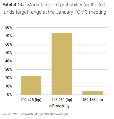 摩根士丹利此前指出,由于 11 月 CPI 报告中住房通胀的下降,市场对美联储在 1 月份降息的预期有所增加。