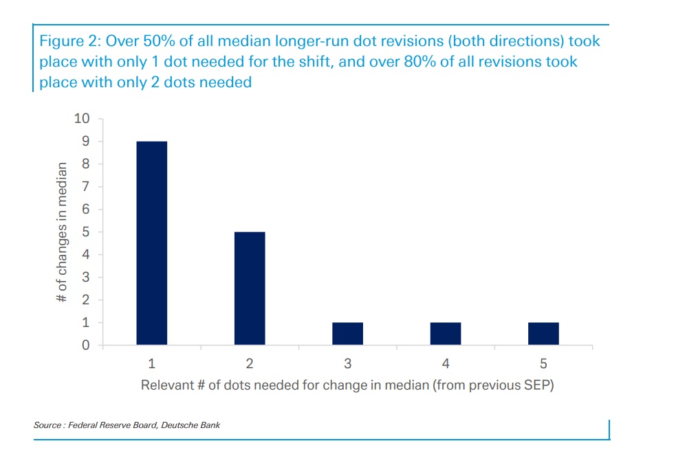 该团队指出,过去公布的三份 SEP 中,长期中性利率都有所上升,并且非常脆弱,只需一个向上修正就能使中位数上升。
