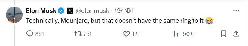 可是,紧接着马斯克就发帖和司美格鲁肽撇清关系,称 “技术上说,是 Mounjaro,和之前不是一样的东西。” Mounjaro 是礼来开发的重磅降糖药,和司美格鲁肽一样也是被用于减重的 GLP-1 受体激动剂糖尿尿病药物。