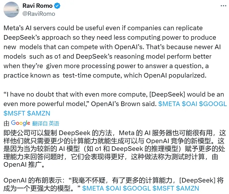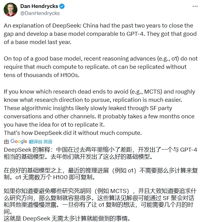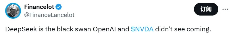 甚至有网友认为 DeepSeek 是 OpenAI 与英伟达都未曾预见的黑天鹅。