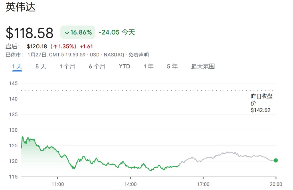 隔夜,国产大模型 DeepSeek 暴击全球算力股,英伟达股价狂泻 17%,单日市值蒸发近 6000 亿美元,创下美股史上最大规模的单日市值蒸发纪录。受此影响,欧美科技股整体遭遇重创,一夜之间市值蒸发高达 1.2 万亿美元,AI 算力需求不足的恐慌弥漫着华尔街。