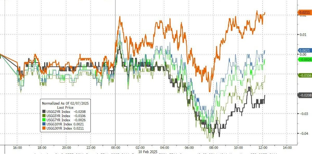 - 其他重点个股中:(1)麦当劳收涨 4.8%,创 2020 年以来最佳单日表现。业绩好坏参半,Q4 营收利润双降,美国同店销售创近五年最大降幅。(2)嘉信理财收跌 2.42%,道明银行计划出售其对嘉信理财的全部股权投资。(3)日本内阁官房长官林芳正表示,日本制铁(新日铁)正考虑大幅修订计划,以取代之前寻求收购美国钢铁公司的做法,美国钢铁收涨 4.79%。(5)“比特币持仓大户” Strategy 收涨 2.16%,在 2 月 3-9 日之间耗资 7.424 亿美元采购约 7633 个比特币。(6)SpringWorks Therapeutics 收涨 34.06%,此前媒体报道称,德国默克集团洽谈收购这家癌症与罕见病药品研发公司,而德国默克集团欧股收跌 3.71%。