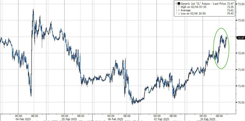 - 美油:WTI 3 月原油期货收涨 1.32 美元,涨幅将近 1.86%,报 72.32 美元/桶。美油最高涨近 2.2% 站上 72.50 美元。