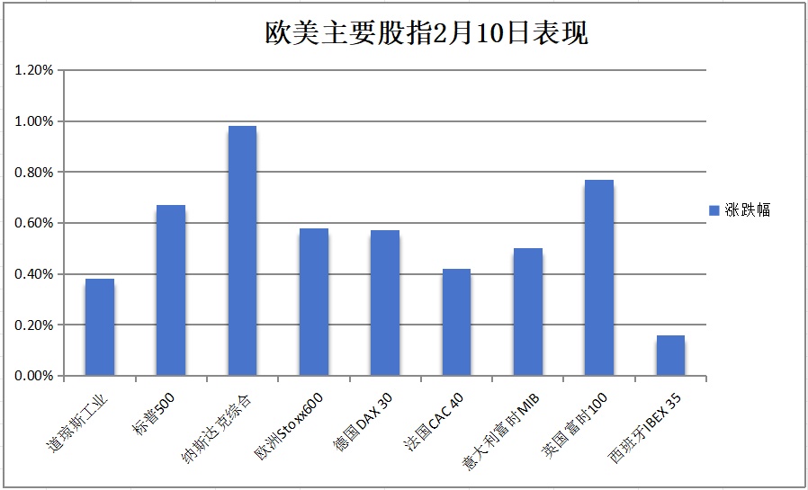 德国 DAX 30 指数收涨 0.57%,时隔一个交易日再创收盘历史新高。法国 CAC 40 指数收涨 0.42%。荷兰 AEX 指数收涨 0.83%。意大利富时 MIB 指数收涨 0.50%。英国富时 100 指数收涨 0.77%,时隔一个交易日再创收盘历史新高。西班牙 IBEX 35 指数收涨 0.16%。
