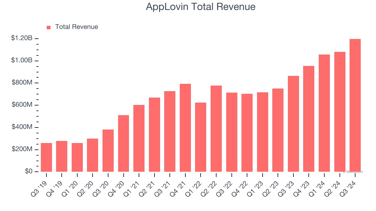 观察 AppLovin 在销售和营销软件领域的同行,一些公司已经发布了第四季度的业绩,给我们提供了一些预期的线索。LiveRamp 实现了同比 12.4% 的收入增长,超出分析师预期 1.7%,而 Shopify 的收入增长了 31.2%,超出预期 3%。LiveRamp 在发布业绩后上涨了 2.7%。