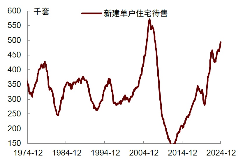 另一方面,高房价持续抑制购房者的购买力。数据显示,美国首次购房者的年龄中位数已从 2019 年的 46 岁上升至 56 岁,首次购房者的比例也下降至 24%,为过去十多年来最低水平 [15]。另外如上所述,关税预期使房地产开发商开始担心成本问题,这会导致开发商降价意愿下降,从而导致新屋库存积压(图表 8)。