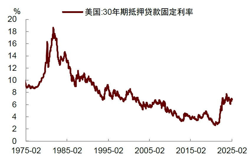 尽管美联储去年 9 月开启了降息周期,至今已累计降息了 100 个基点,但长端利率并未显著下降,这阻碍了对利率敏感的房地产行业的复苏。截至 2 月 20 日,美国 30 年期房贷利率仍高达 6.85%,持续抑制新增贷款购房的需求(图表 7)。由于 1 月核心 CPI 通胀超预期反弹,加上 2 月通胀预期有所抬升,我们认为美联储或推迟年内降息的时点至下半年,这将进一步打压未来利率下降预期。我们在去年底的报告中曾提到,本轮降息周期中,长端利率下降速度明显慢于以往周期,这会导致房地产全面复苏的时间被延后。这一观点在近期的数据中得到了印证。