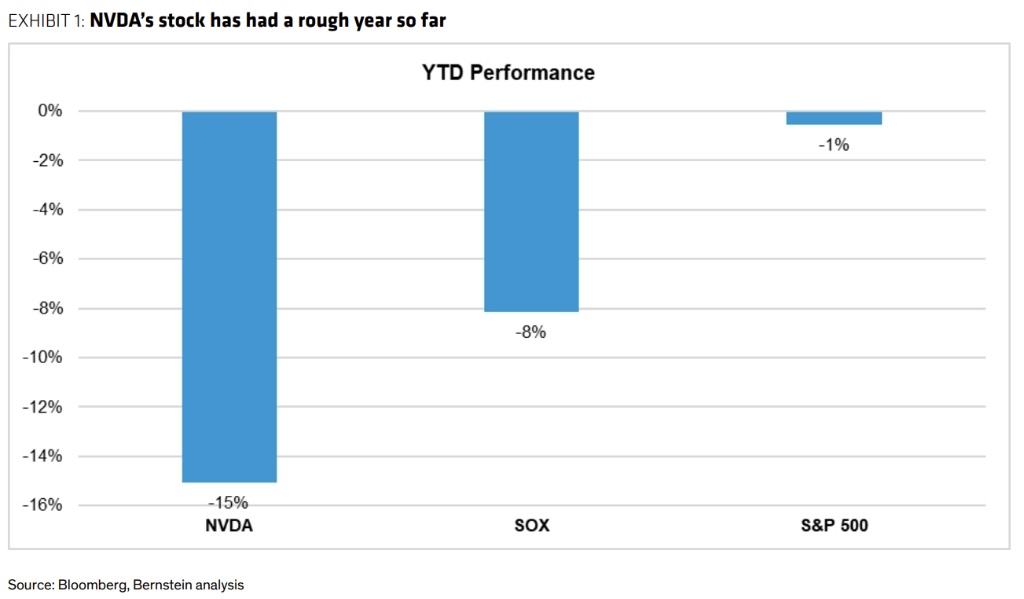 今年对英伟达来说不可谓不艰难——受增长担忧、供应链、关税、监管风险等影响,英伟达和许多 AI 半导体同行都遭受重创,股价年初至今已经下跌了 15%,表现逊于整体疲软的半导体市场(SOX 指数下跌约 8%)和标普 500 指数(下跌约 1%)。