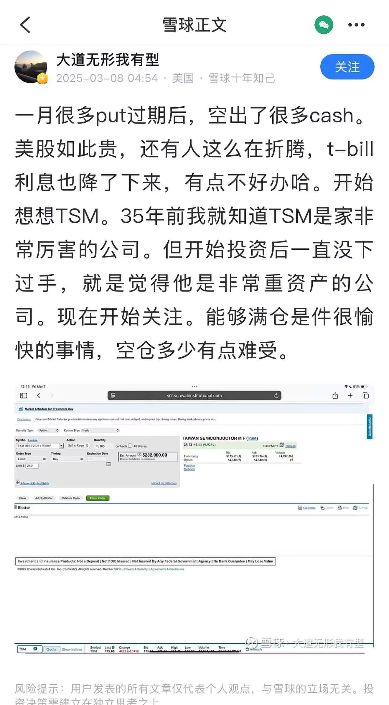 在 8 日与雪球的交流记录中,段永平坦言,自从他陆续清空了腾讯和英伟达的部分看跌期权后,手握大量现金的他,开始重新审视台积电的投资价值。尽管早在 35 年前就认识到台积电的卓越,但因其重资产特性而迟迟未下手。