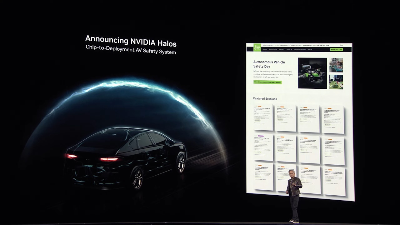 英伟达推出了专注于汽车安全的 AI 解决方案,名为英伟达 Halos。黄仁勋说:“我相信,我们是世界上第一家对每一行代码都进行安全评估的公司。”