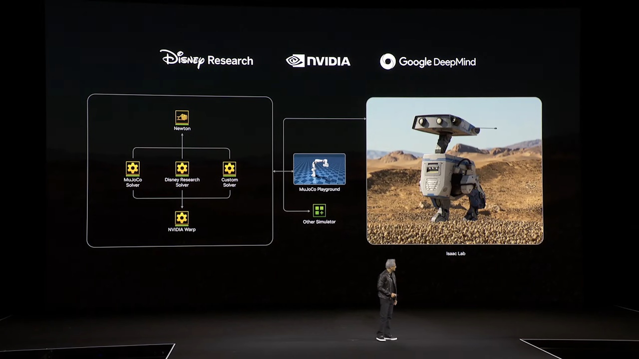 黄仁勋透露,英伟达与谷歌的 DeepMind 和迪士尼在合作开发机器人模拟用的开源、可扩展物理引擎,名为 Newton,预计今年晚些时候完成开发。英伟达称,Newton 旨在推动机器人的学习和发展。