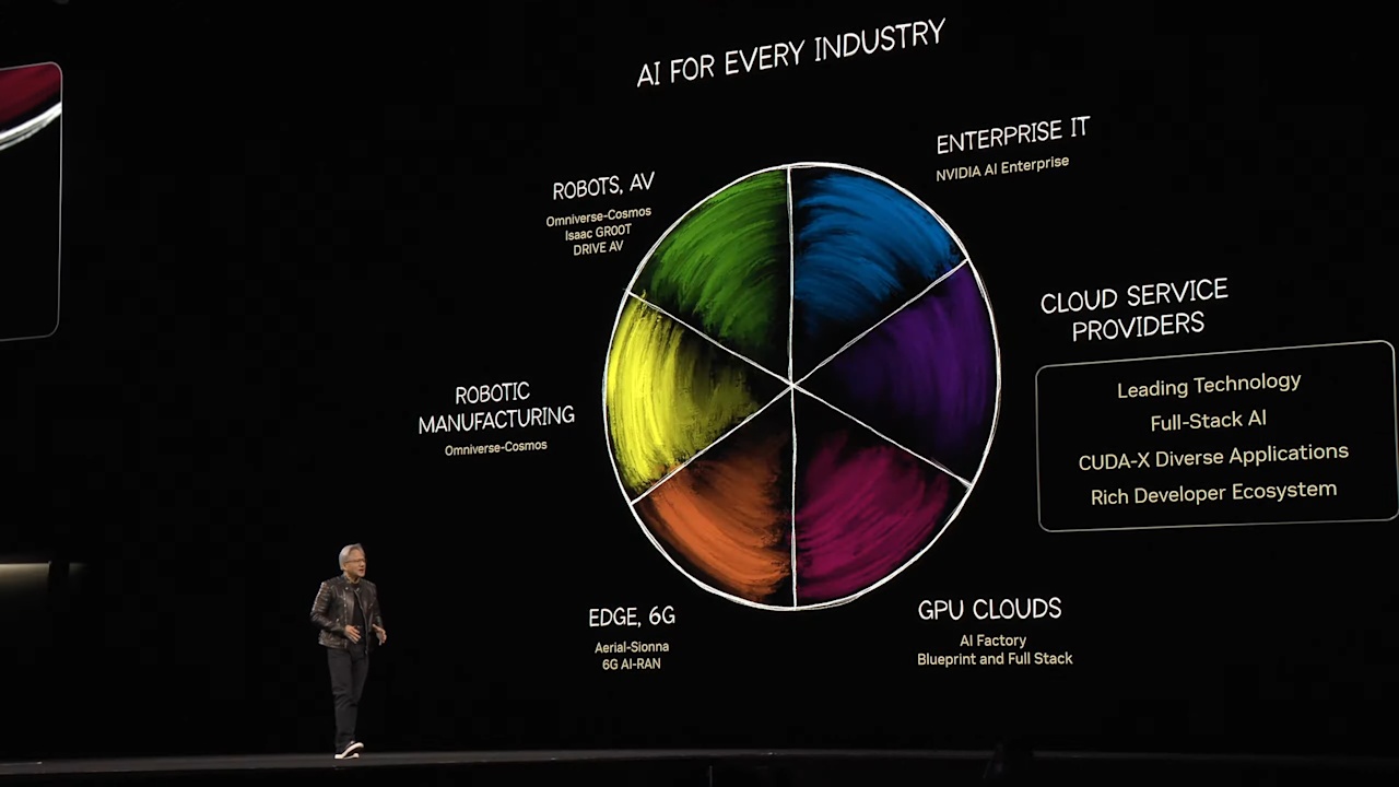 黄仁勋高度评价机器人市场的潜力,称它 “很可能是最大的产业。”