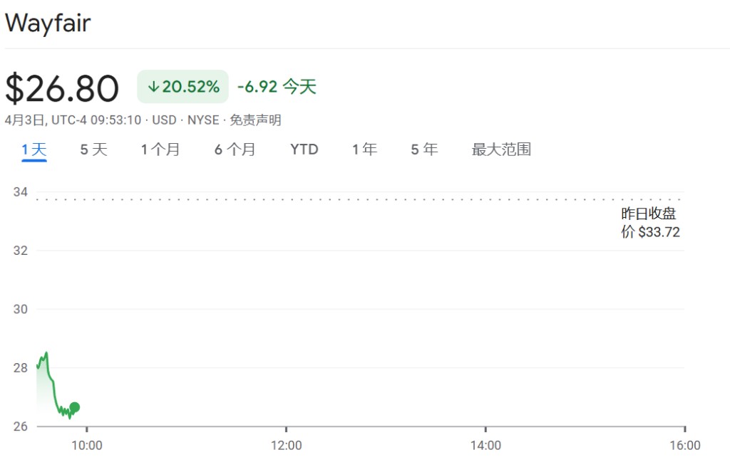 家具行业同样面临挑战。根据投行 Mann, Armistead & Epperson 数据,2023 年,美国 26.5% 的家具进口来自越南。美国最大居家电商 Wayfair 和越南家具生产商有紧密的合作,美股盘初,Wayfair 股价重挫 21%。