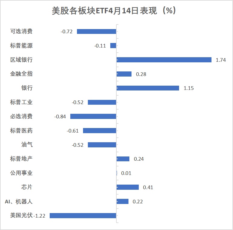 区域银行 ETF 收涨 1.7%,银行业 ETF 涨 1.38%,全球航空业 ETF 涨 1.01%.