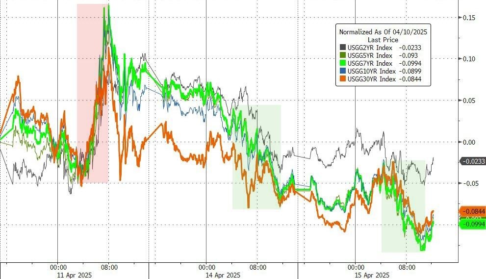 尽管美债在纽约尾盘出现短期下跌,但是周二当日美国国债收益率全线走低,其中中期债券表现优异,所有收益率均低于周五之前的飙升水平。摩根大通戴蒙表示,导致美国国债收益率升至周期高点的去杠杆化过程目前可能已经结束。投资者正通过购买短期债券,重新押注利率下降。
