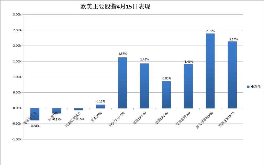 欧洲 STOXX 600 指数收涨 1.63%,报 508.06 点。