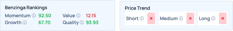 Benzinga 边缘股票排名 显示特斯拉的动量为 92.5,增长为 67.70。与电动车领域的其他公司相比如何?点击这里,自己发现。