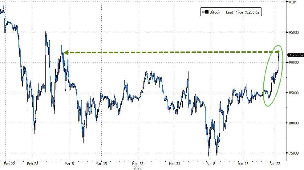 俄乌和平希望增加,美国关税贸易谈判的乐观预期,推动美股周二反弹,中概股大涨。特朗普声称没打算解雇鲍威尔,进一步平息市场紧张情绪,美股盘后大涨。避险情绪消退下,黄金、日元和瑞郎则出现不同程度回落,比特币延续周一涨势。