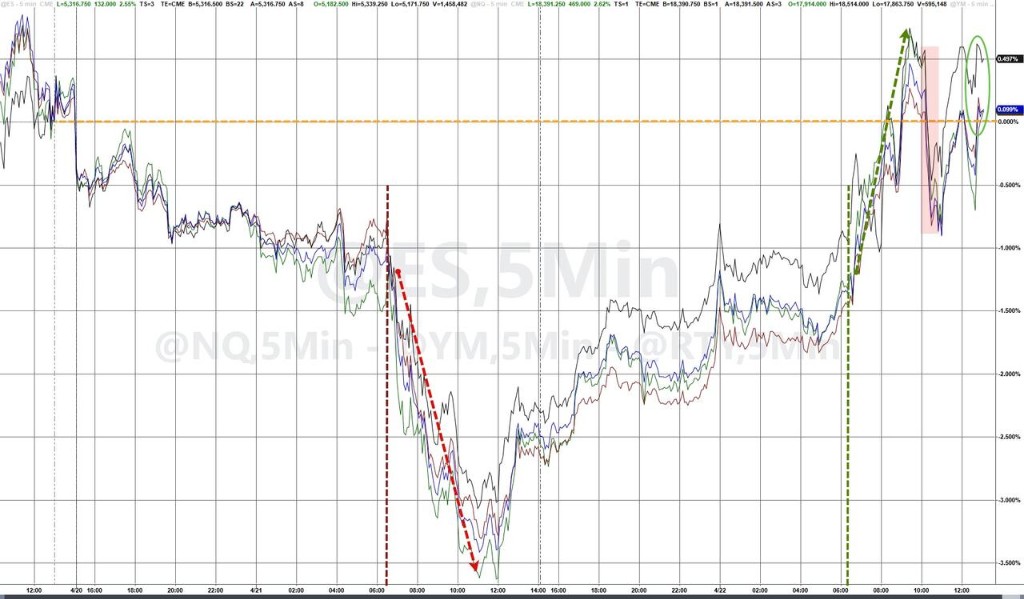 贸易关系缓和希望助美股反弹,纳指涨近 3%,中概走强,阿里涨超 5%,黄金盘中高位跳水超 3%