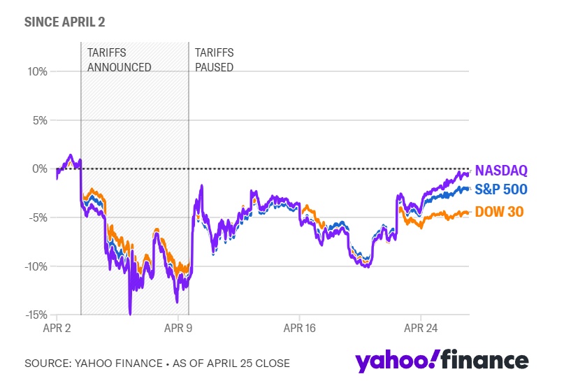 在主要股指基本收复 4 月 2 日关税声明发布前的失地后,市场将迎来经济数据与企业财报密集发布的一周。