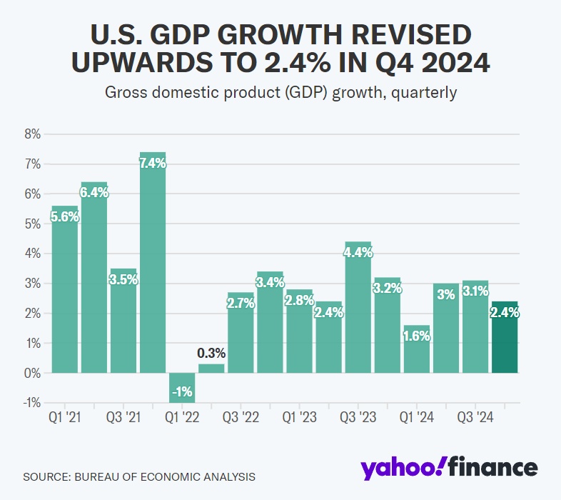 经济学家预计,第一季度 GDP 年化增速将骤降至 0.1%,较 2024 年四季度的 2.4% 大幅回落,若预测准确,这将是 2022 年以来最缓慢的季度增长。