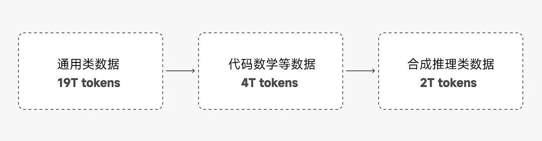 - 数据:着重挖掘富推理语料,并合成约 200B tokens 推理数据。