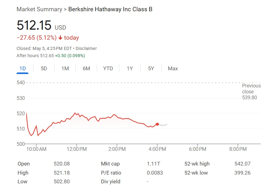 巴菲特将卸任 CEO 叠加业绩不及预期,伯克希尔盘中跌超 6%