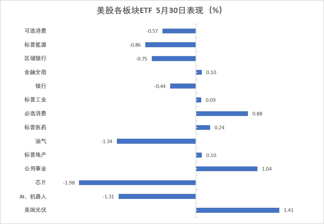 生物科技指数收跌 2.03%,半导体 ETF 跌 1.77%,能源业 ETF、区域银行 ETF、银行业 ETF、可选消费 ETF、科技行业 ETF 至多跌 0.89%。