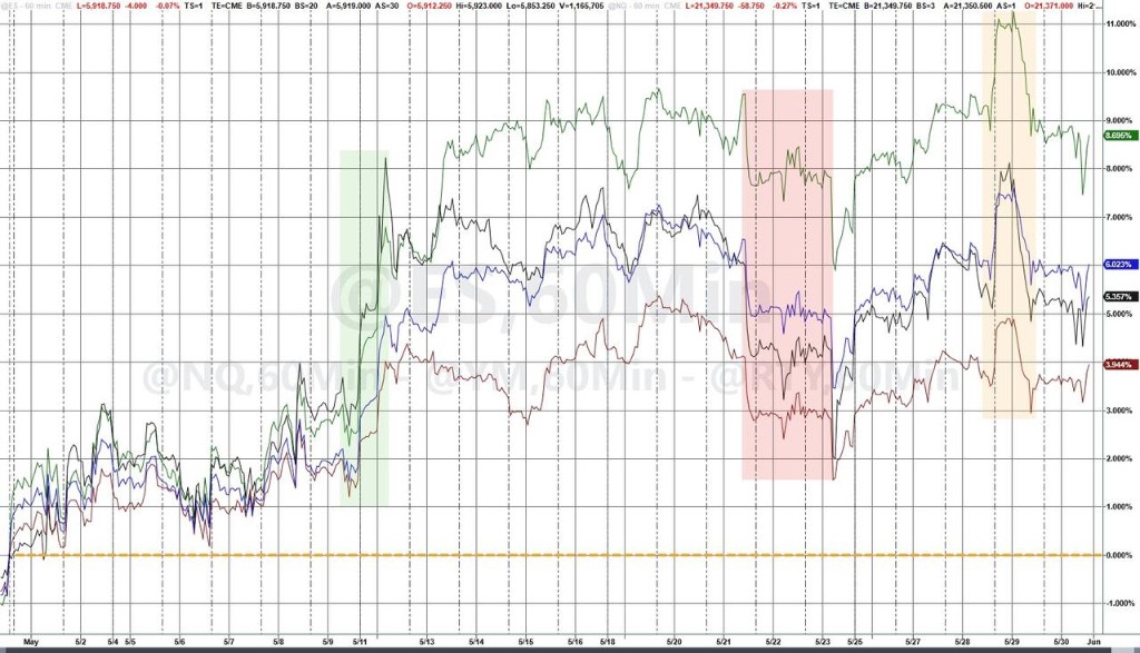 特朗普贸易信号反复,美股盘中探底回升,标普创 1990 年来最佳 5 月表现,美债年内首度月跌