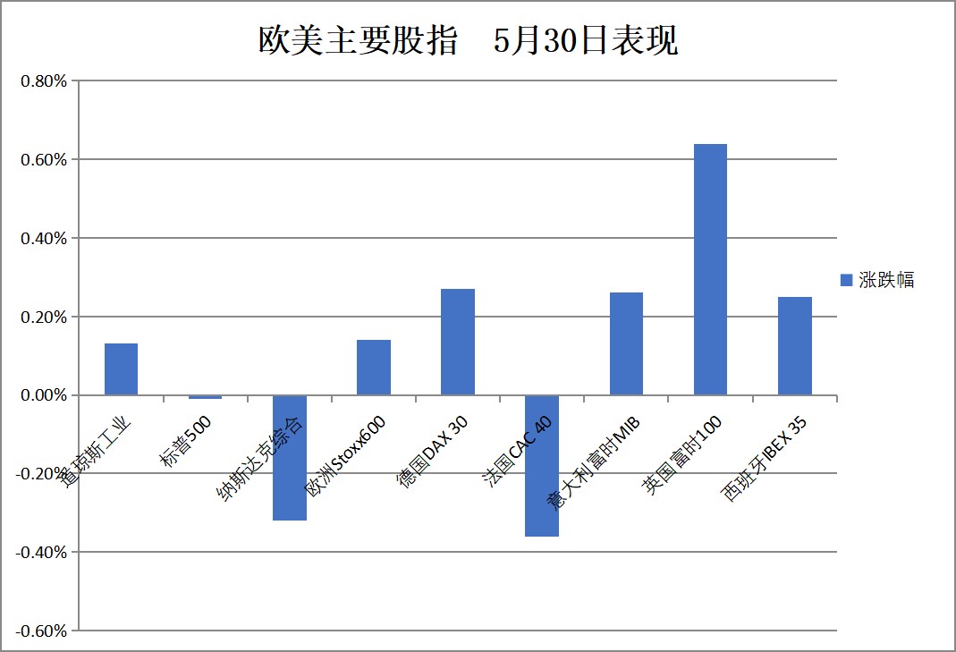 德国 DAX 30 指数收涨 0.27%,报 23997.48 点,5 月份累计上涨 6.84%。