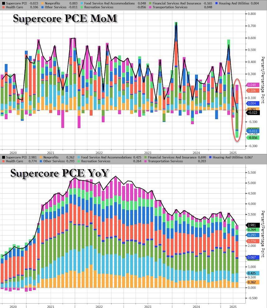 值得注意的是,美联储密切关注的 “超级核心通胀指标”——不包括住房和能源的核心服务成本也跌至四年来最低,为自 2020 年 4 月以来首次环比下降。