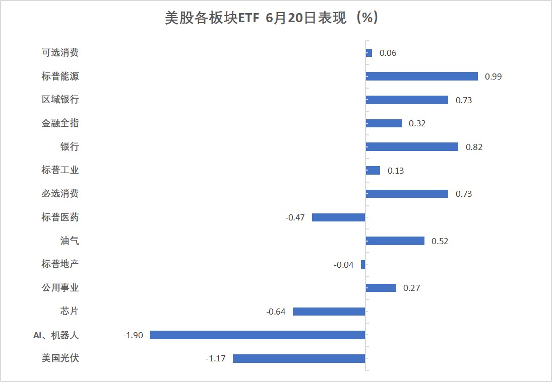 AI 机器人板块跌 1.90%,光伏板块跌 1.17%。能源板块 ETF 涨近 1%,银行 ETF 则涨 0.73%。