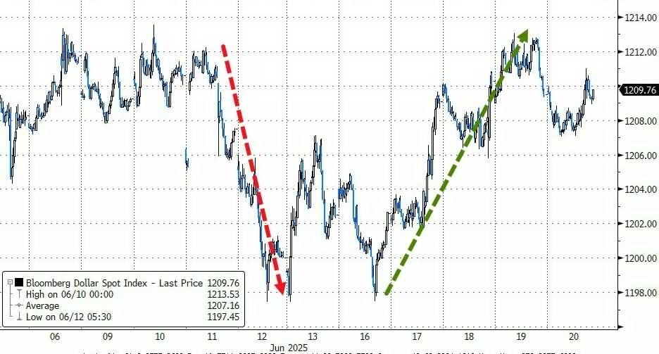 彭博美元指数涨 0.05%,报 1210.04 点,本周累涨 0.63%,整体交投区间为 1197.48-1210.04 点。